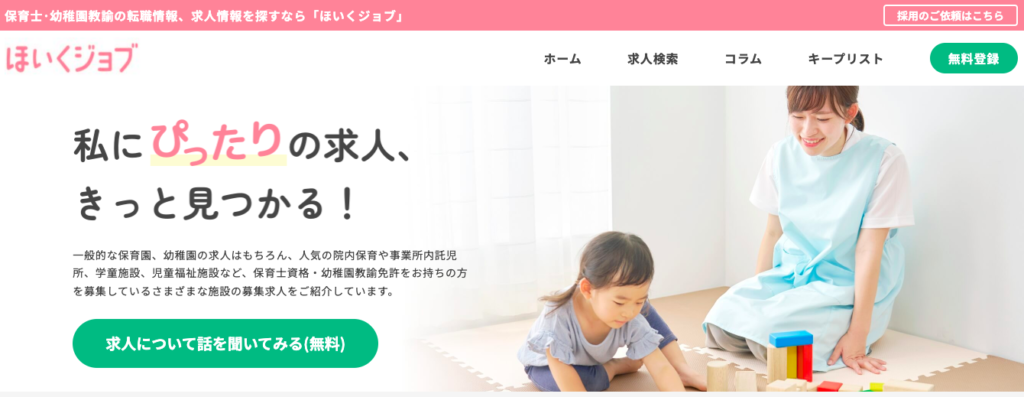 ほいくジョブは、株式会社プレアデスが運営する保育士・幼稚園教諭の求人に特化した転職サービスです。